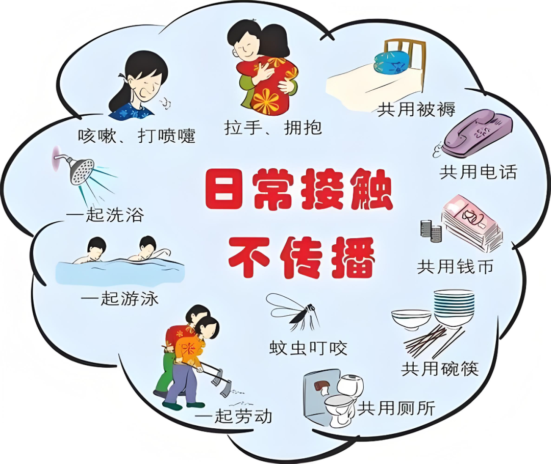 【重要提醒】日常接触不传播!比如:握手、拥抱、共餐、共用办公室等都不会感染。所以,请给予艾滋病病毒感染者和病人充分的尊重与理解。