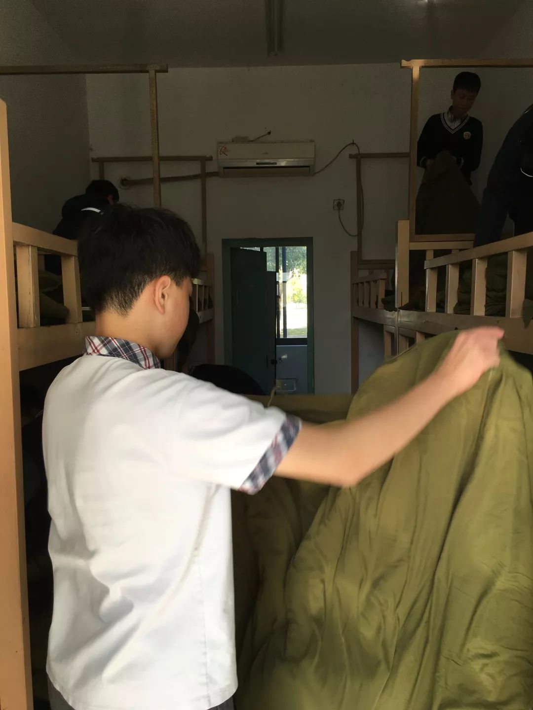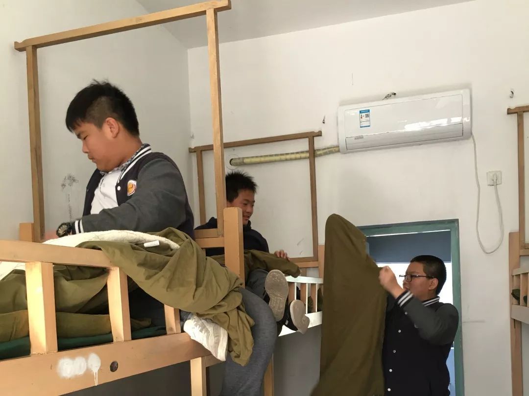 体验生活的第一课就是学会整理,开营仪式结束后,同学们便进入宿舍整理内务。
