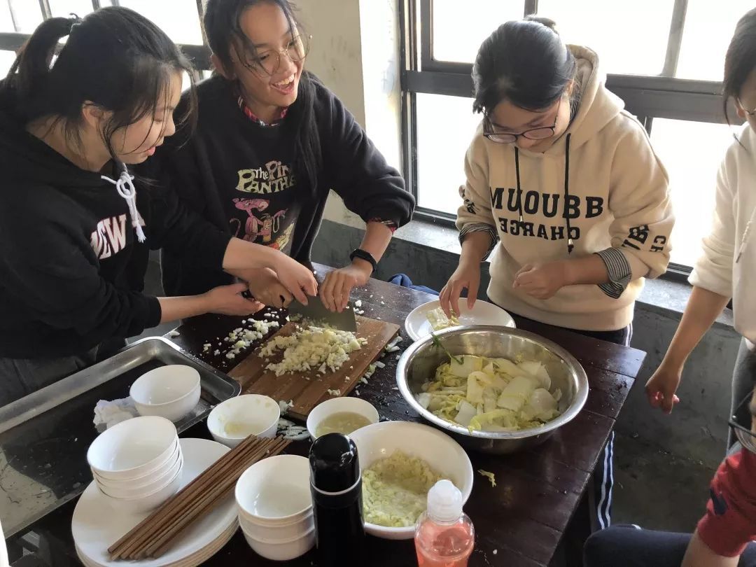 生火、烧水、剁馅、拌馅、包馄饨。整个过程全都亲自完成。品尝着自己的劳动成果,大家都感到深深的满足。这也让他们学会感恩父母日复一日辛劳地付出。