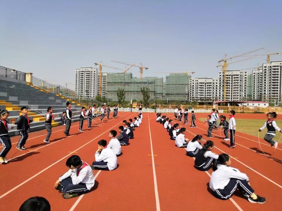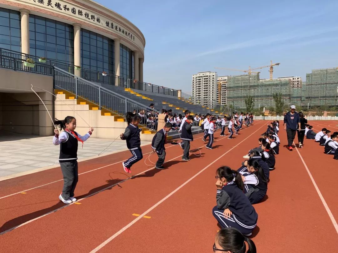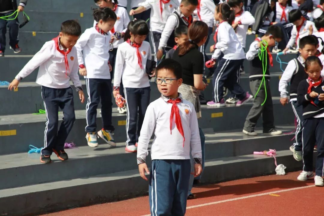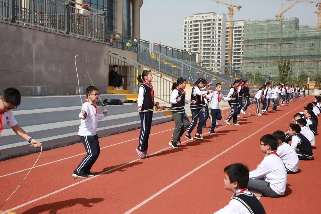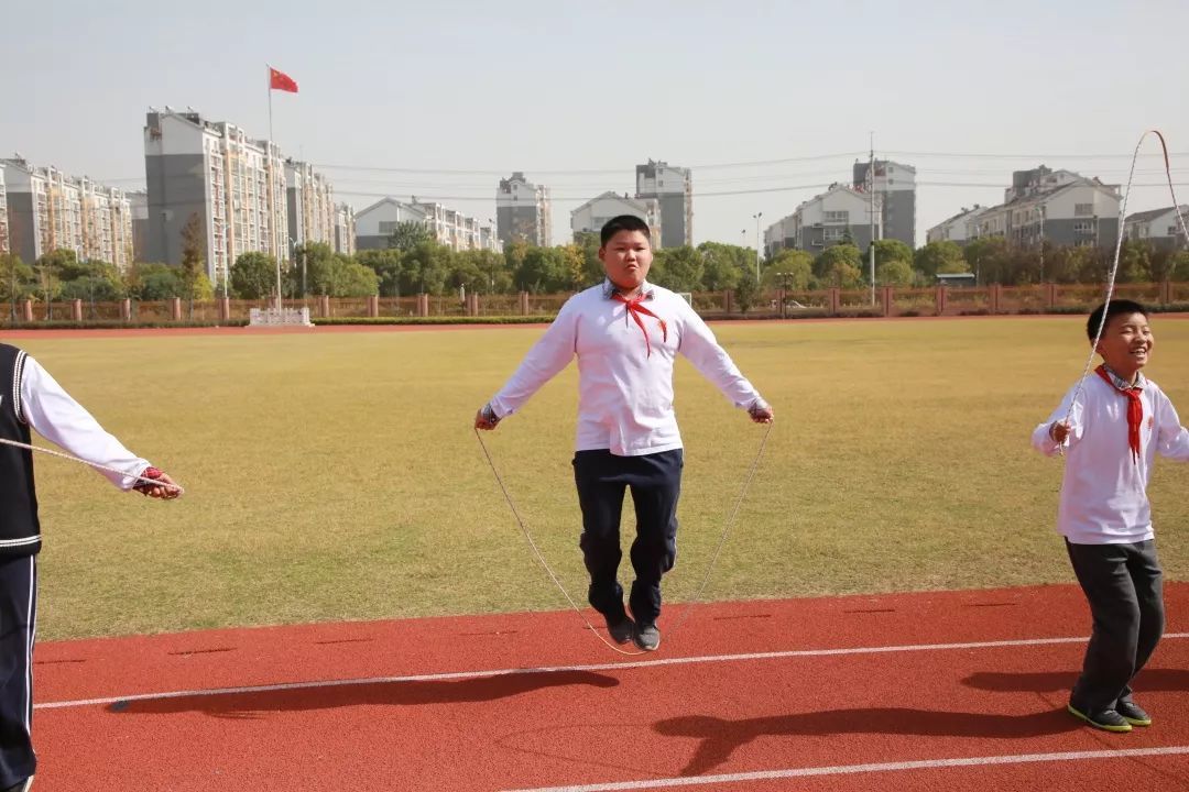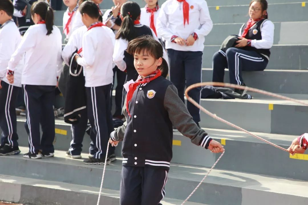 比赛当天由六年级的孩子进行执裁,帮助低年级的孩子统计跳绳次数,对有个别不太熟练的孩子还进行了现场的指导。