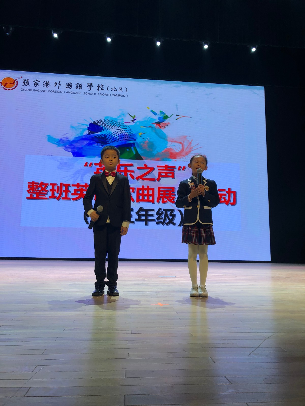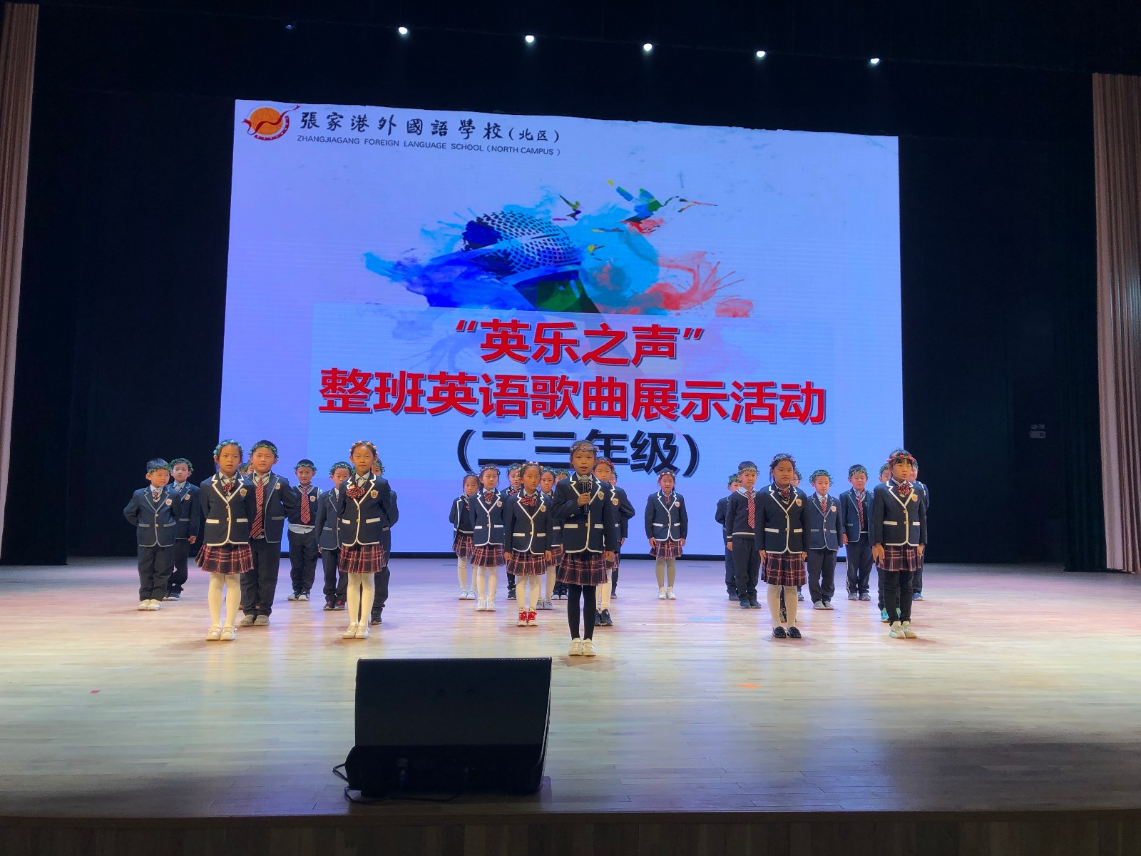 为了丰富学生校园文化生活,营造校园英语特色氛围,增强学生口语能力,加强同学之间的口语交流,陶冶学生的艺术情操,培养合作精神。张家港外国语学校(北区)二三年级于11月12日举办了第二届英语歌曲整班展示活动。