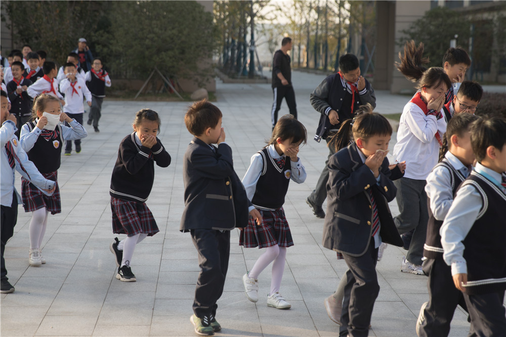 今天的防火紧急疏散演练是我校“走近生命,感恩生活”主题教育月活动和“119”消防宣传月活动的重要内容。在此,我宣布张家港外国语学校(北区)“走近生命,感恩生活”主题教育月活动和“119”消防宣传月活动启动。希望每个师生积极投入这两个活动中,进一步认识生命、理解生命、尊重生命、热爱生命、提高生存技能和生命质量,让北区成为安全的校园,让每个北区人都懂得生命的意义。