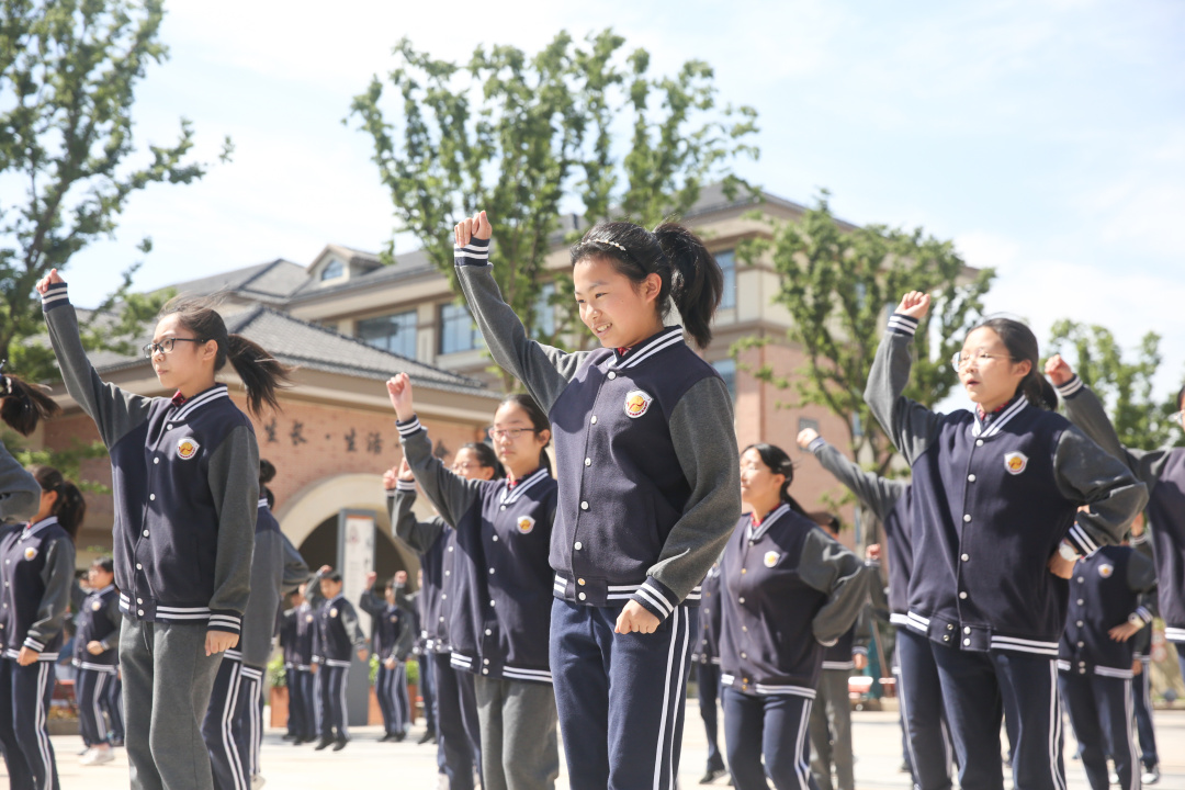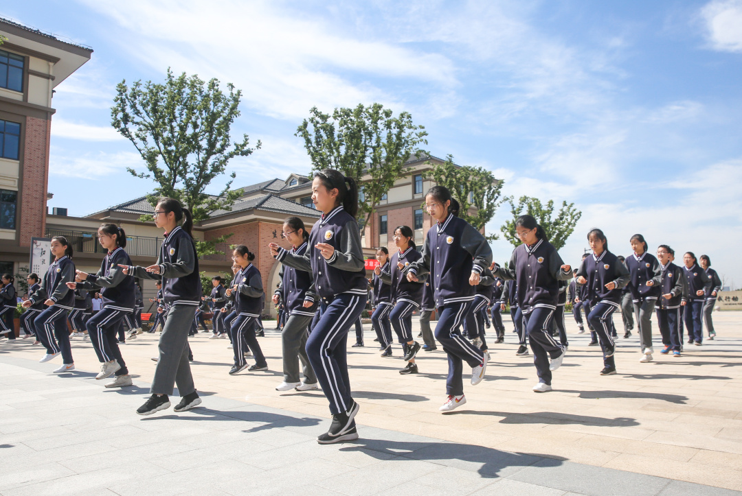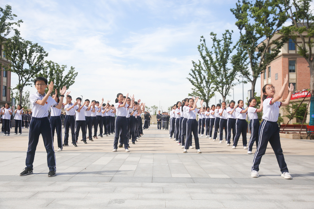 初中部的比赛场地就设在蓝天白云之下,阳光下同学们挥洒律动的青春,自信,阳光,快乐全写在他们的脸上。