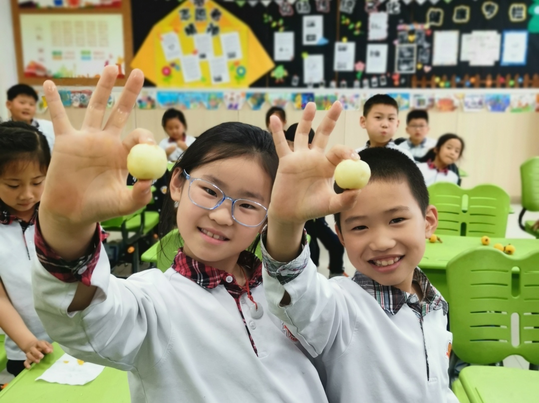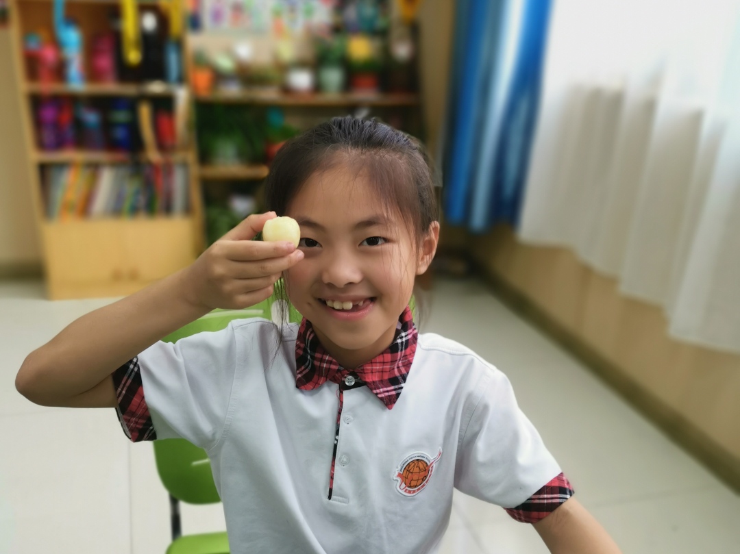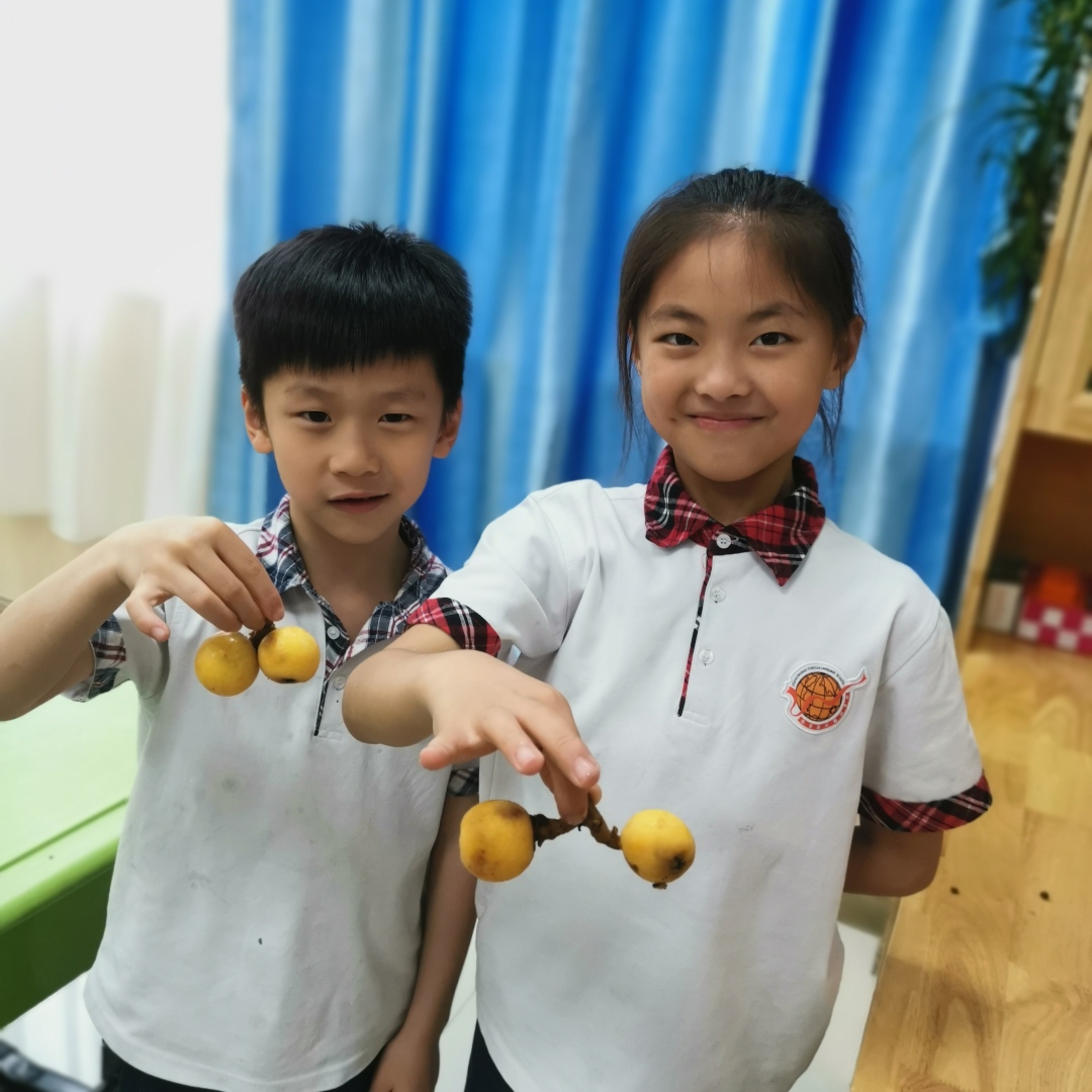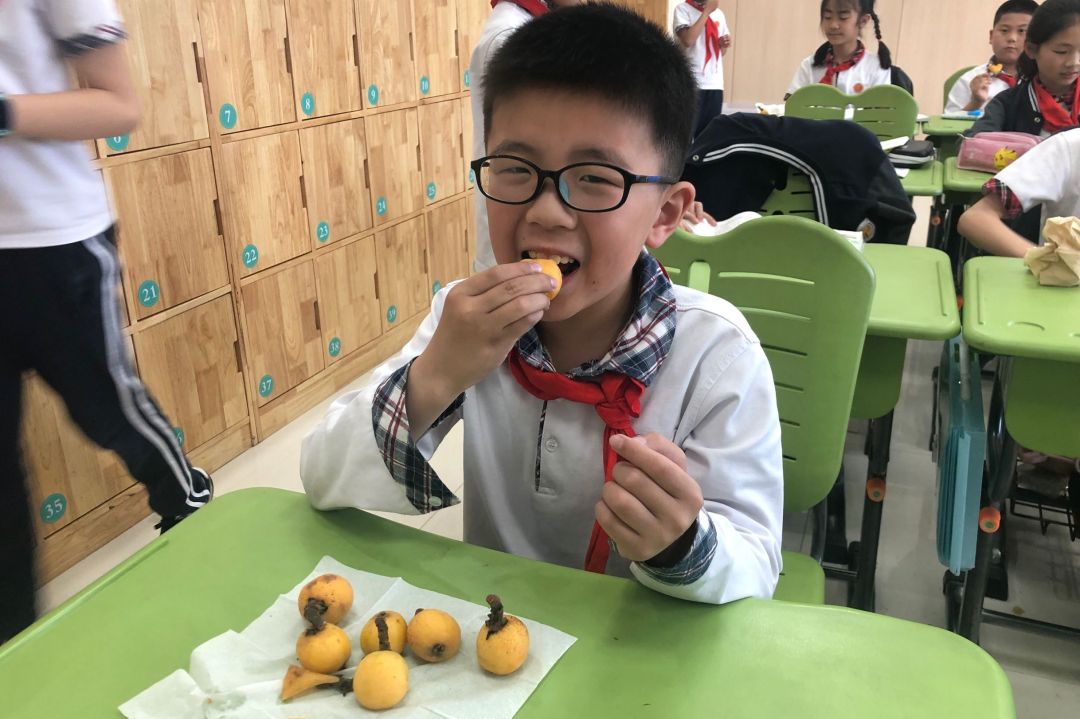 品一颗枇杷,甜在齿颊,美在心头,幸福和快乐立刻浮现在脸上。孩子们有的小心翼翼地品尝美味,有的大块朵颐连形象也不顾了,有的拨出数个带回家与爸妈分享。品枇杷的“众生相”在我们看来,既好玩又甜蜜,希望他们能记住这“张外味道”,也让这份甜蜜常伴他们的校园生活。
