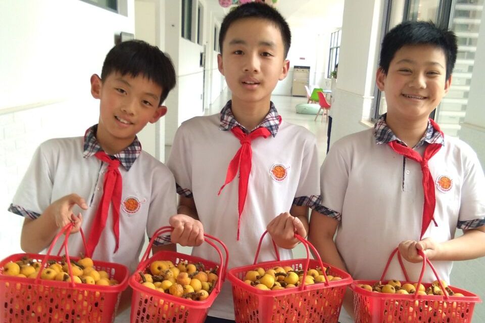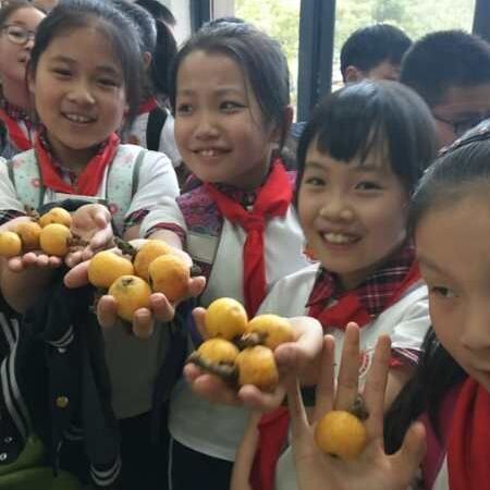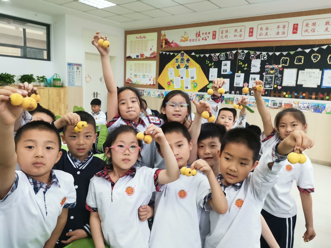 刚加入外校大家庭的北区孩子们无不充满期待,领到枇杷的难掩喜悦,还没领到的各个翘首企盼。