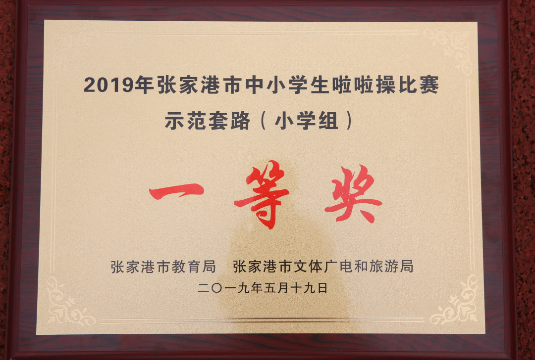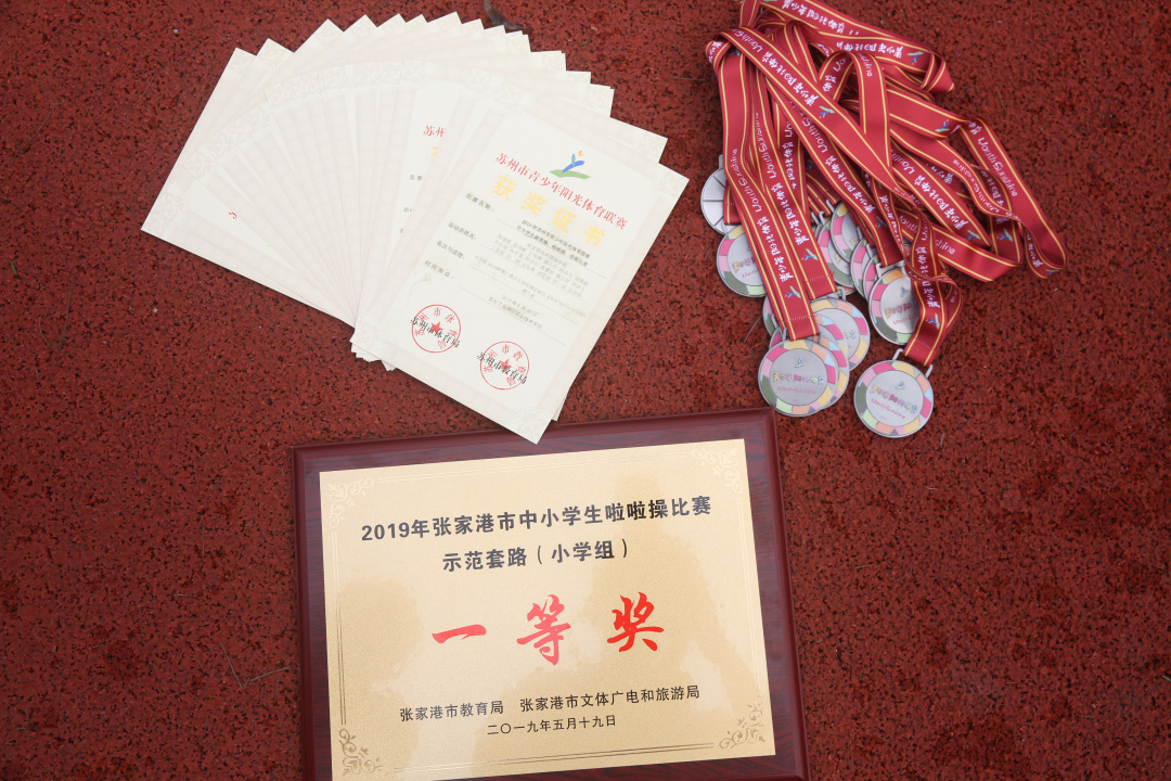 在张家港市教育局和张家港市文广新局联合举办的“2019年张家港市中小学生啦啦操比赛”中,我校荣获示范套路(小学组)一等奖。