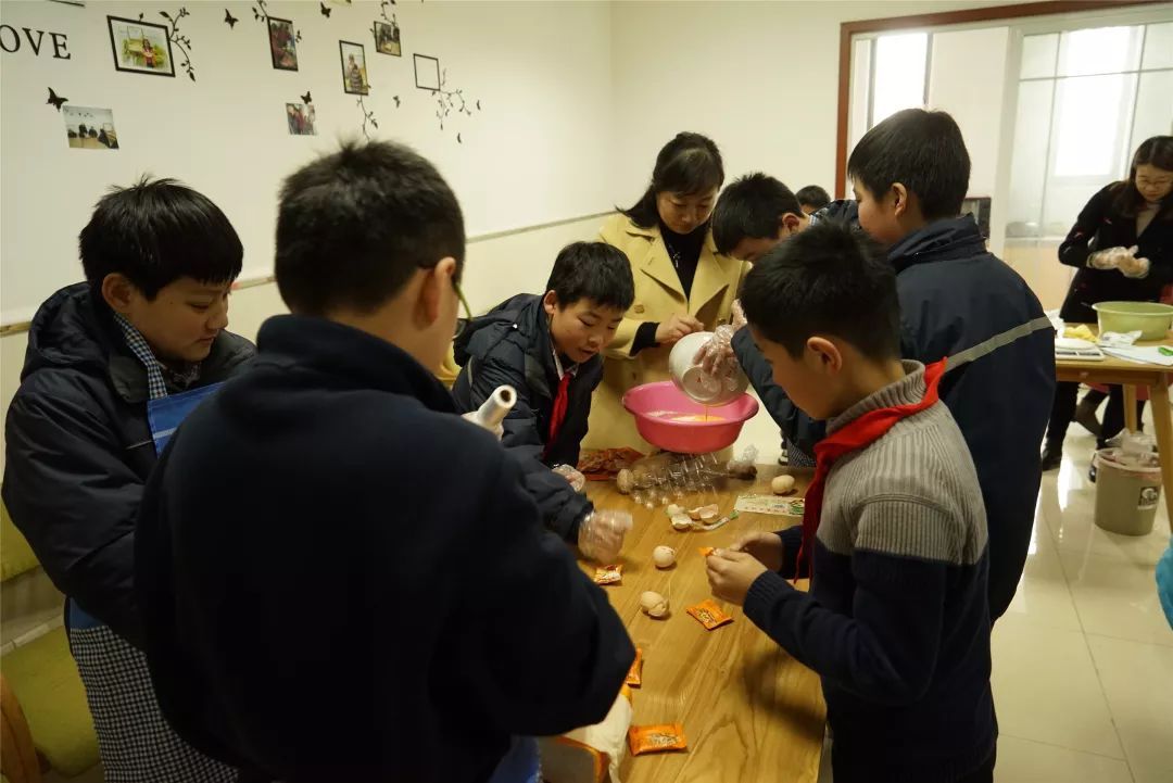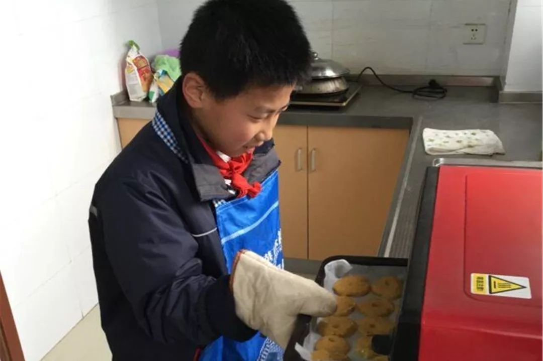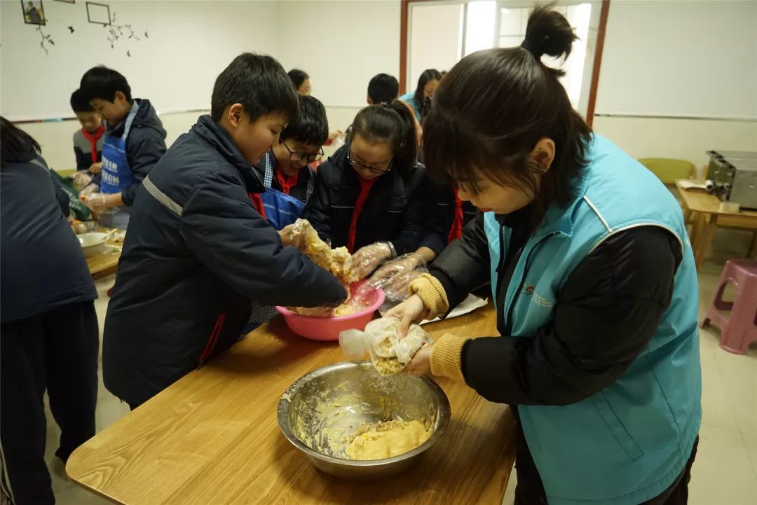 接着就是亮厨艺的时候了,孩子们在社区工作人员的带领下一起和面做饼干。