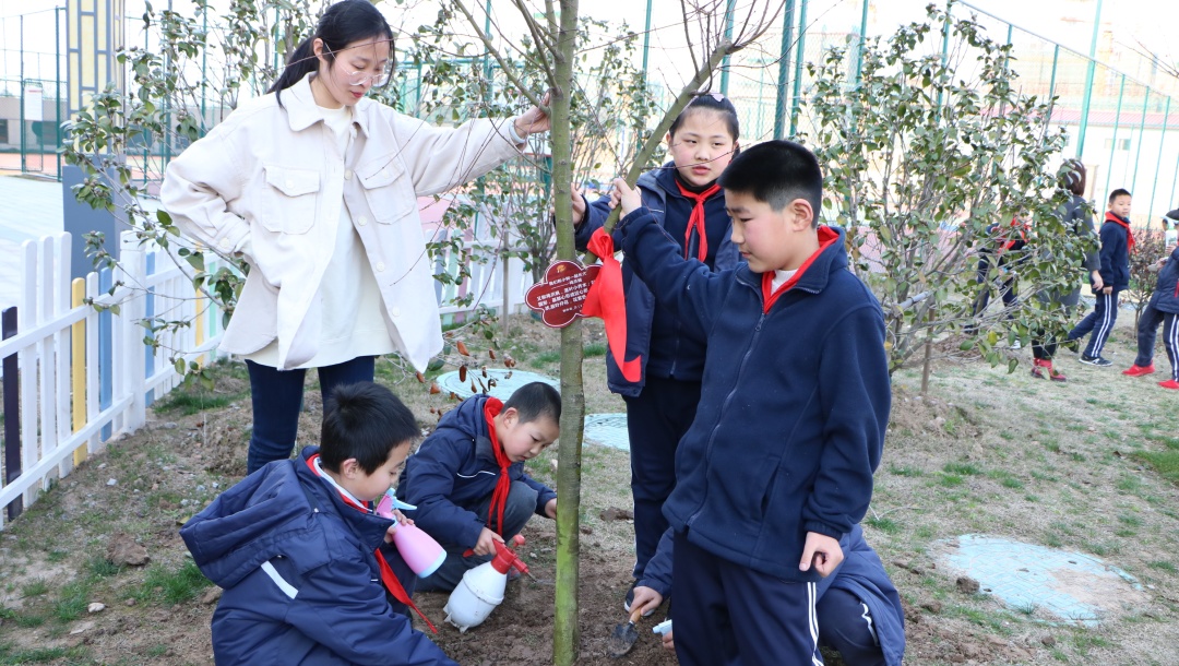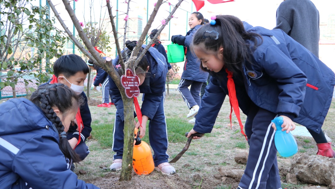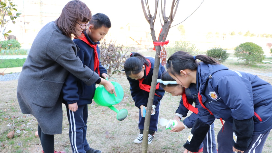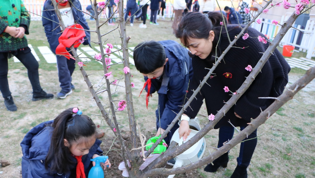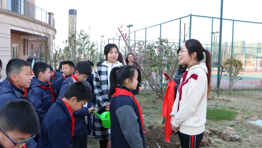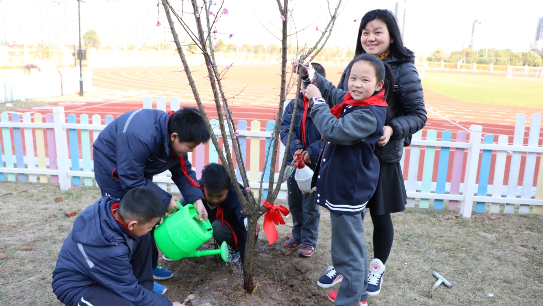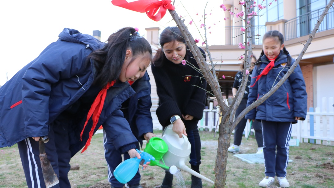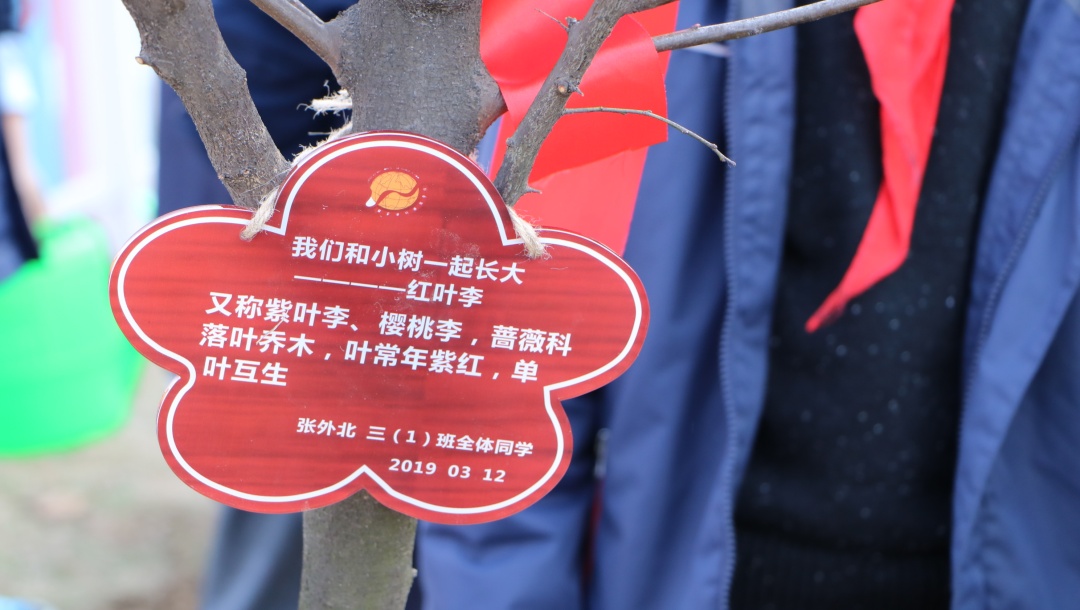 植一抹绿意于校园 留一片希望在心田 来源: 发布时间:2019-03-12 16:08:15 浏览次数: 次 【字体:小 大】 植一抹绿意于校园留一片希望在心田十年树木,百年树人,这是教育大计,值此植树节之际,北区特别组织小学部学生亲身体验植树,为校园增添绿意,让小树陪伴孩子们成长。3月12日下午,北区三(1)班的爱心家长带着小树苗如约而至,来到小花园与师生一起播种绿色。捐赠的树苗 美好的寓意爱心家长们向学校捐赠了红叶李、鸡爪槭、红梅和红枫四种树苗,四个品种的树苗不但成树后色彩各异,能为小花园带来悦目的视觉感受,其中也蕴含着美好的寓意。红梅不畏严寒,迎春怒放,素有不屈不挠,坚韧不拔的精神品质,希望同学们像它一样不畏艰难,意志坚定。另外,红梅还蕴含着快乐、长寿、顺利、幸运、和平等美好的寓意。红叶李的花语是幸福、向上、积极,是对同学们的激励和对美好生活的祝愿,希望同学们乐观积极、勤学向上、幸福永远。同时红叶李开花红里透紫,“红得发紫”在古代更有祝愿他人满门朱紫的意味。鸡爪槭成树形似绣球,素有僻除邪气、喜庆祥和、鸿运当头的美好寓意,种下鸡爪槭,守候同学们健康平安、运气满满、诸事顺遂。红枫在入秋后,色彩艳丽,热忱奔放,激情迸发,祝愿同学们有旺盛的精力和青春的活力。同时红枫又代表着回忆和思念,是家长们对孩子的守候之情,是同学们在校的同窗之谊。今日孩子们的培植和浇灌他日定能成为花树对孩子们的荫蔽和守护。师生家长齐心培植爱心树植树开始前,班主任老师向孩子们讲述了植树节的历史渊源和植树造林的意义,希望孩子们更加关注环境、保护环境。执行校长陈胜英宣布活动开始,大家一起拿起工具开始干活。一起为树苗培培土。一起为树苗浇浇水。为树苗挂上“身份牌”、系上“红领巾”,以后陪伴小朋友们一起长大。给孩子们介绍一下树苗特点和特色,在活动中也能掌握一点有趣的知识。从今往后的日子里,到底是孩子们长得快长得高,还是这些小树苗长得快长得高呢?就让他们相互陪伴,相互守候。希望孩子们有空多去照顾照顾小树苗,因为这是你们的责任呢。 分享到: 【打印正文】