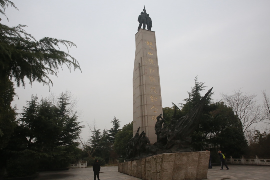 活动最后一站是位于双山岛西北角上的渡江战役纪念碑。1949年4月,解放形势一片大好,人民解放军发动了“百万雄师过大江”的渡江战役,与敌人展开最后的决战。在双山岛战场上,几十名渡江的解放军战士遇到了当时双山沙一个加强营将近200多人的负隅顽抗。21日晚,在军民配合下,解放军战士击毙敌人50多名,俘虏上百名,取得了双山沙战斗的胜利,但在战斗中11名战士壮烈牺牲,于是建成了今天的渡江战役烈士纪念碑。