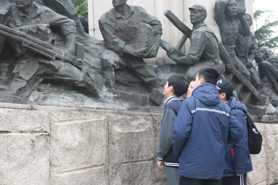 听着讲解员的讲述,同学们在碑前肃立,缅怀先烈。在介绍烈士们事迹的宣传栏前,同学们久久不舍离去,今天的幸福生活都是老一辈革命家用鲜血换来的,应当倍加珍惜。