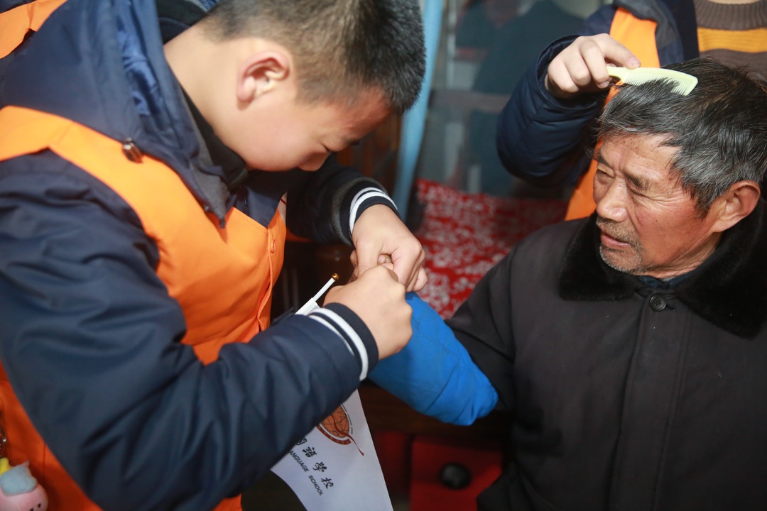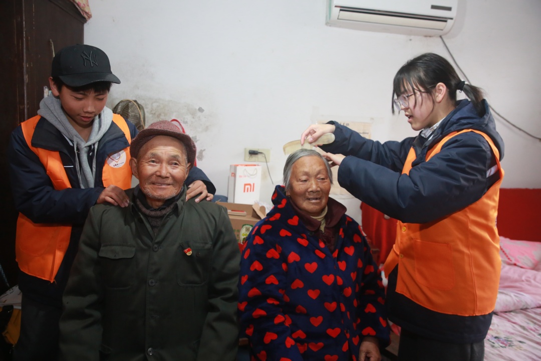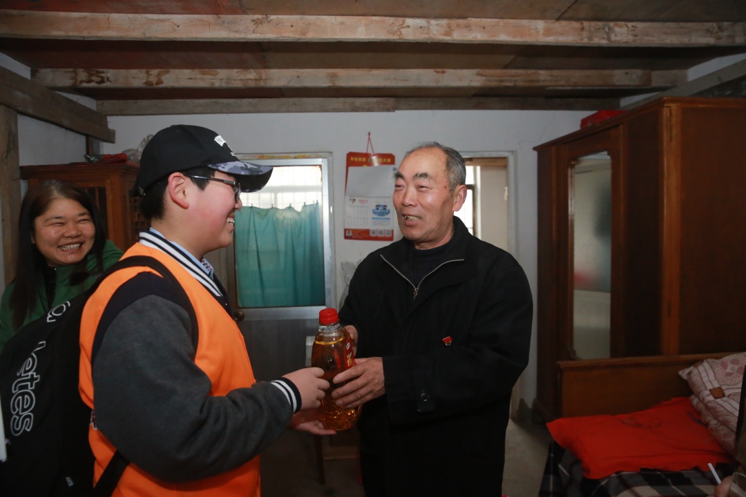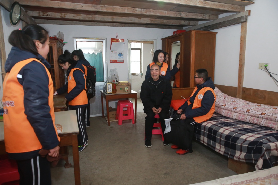 到达老年过渡房,40多名同学分成几组开始活动。他们携带了一些日常生活用品作为见面礼。
