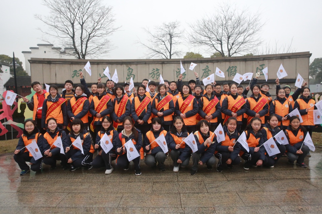 全员登岛后在码头广场集合,穿上志愿者马甲后班主任老师再次向全班通报活动纪律和要求。