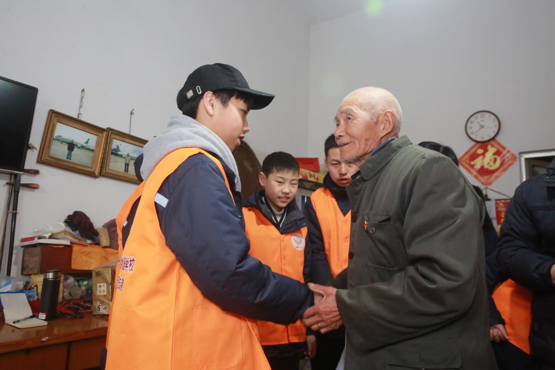 这一组看望的老人家是一名老党员,同时也是一名退伍老兵,孩子们的到来令他很高兴,他说他自己的孙女差不多跟这些孩子一般大,看到这个年龄的孩子们就格外亲切。