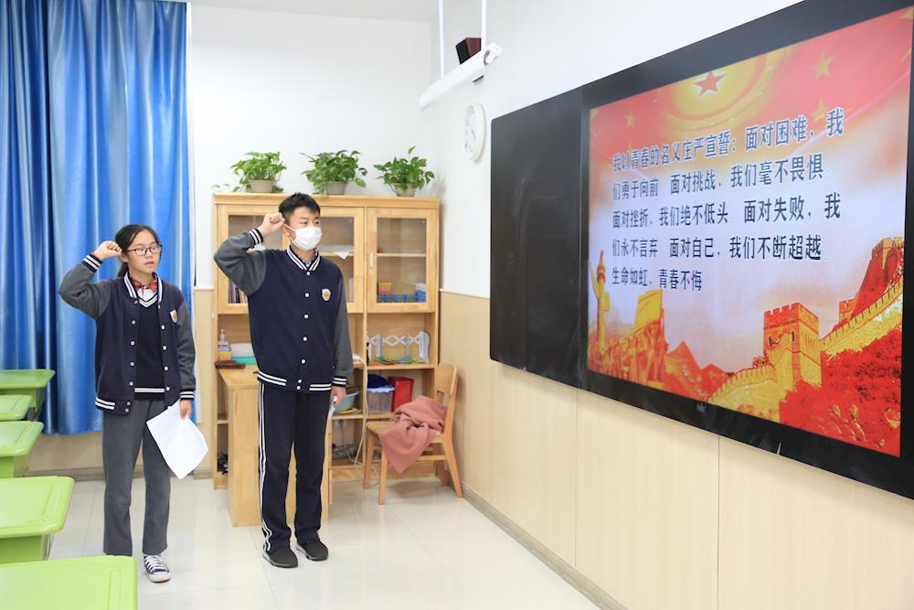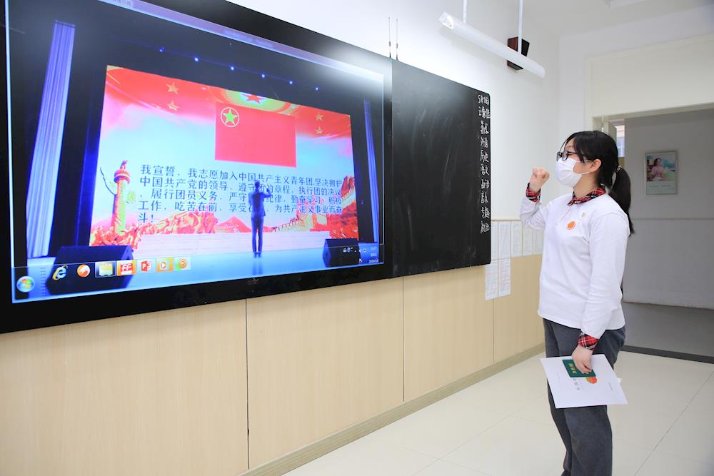 2020年5月8日,张外北区初二年级开展了一场别开生面的青春仪式。因新冠肺炎疫情影响,北区采用视频会议的形式开展了“实现中国梦 青春勇担当——北区2020年度新团员入团仪式暨青春仪式”活动。