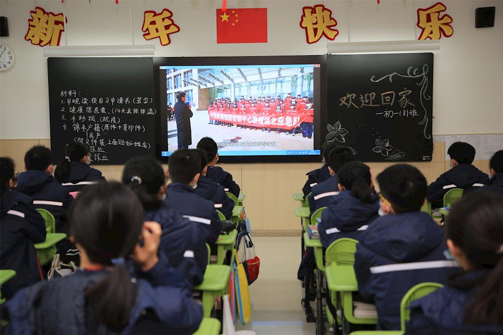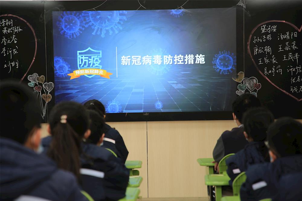 北区初一年级、六年级开展“开学第一课”主题班会 来源: 发布时间:2020-04-13 09:51:51 浏览次数: 次 【字体:小 大】 北区初一年级、六年级开展“开学第一课”主题班会4月13日,初一年级和六年级返校。返校首日,初一和六年级组织开展“开学第一课”主题班会,重点学习疫情相关知识,学习校园防控要求。为疏导学生疫情期间的特殊情绪,做好防疫心理建设,“开学第一课”上班主任老师们还与学生探讨人与自然、人与病毒、怎样看待灾难等话题。 分享到: 【打印正文】