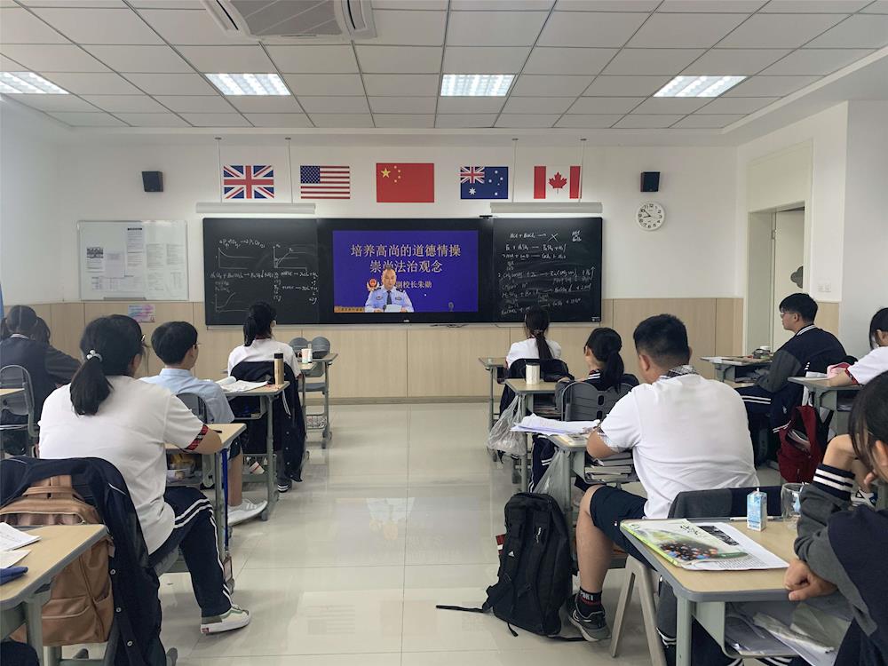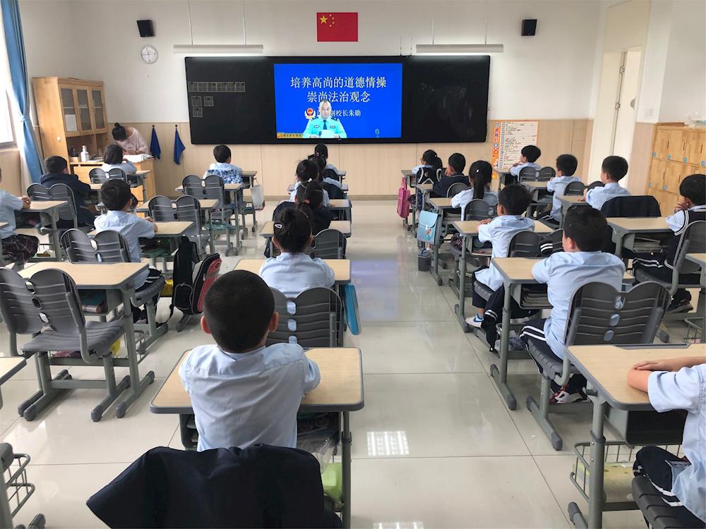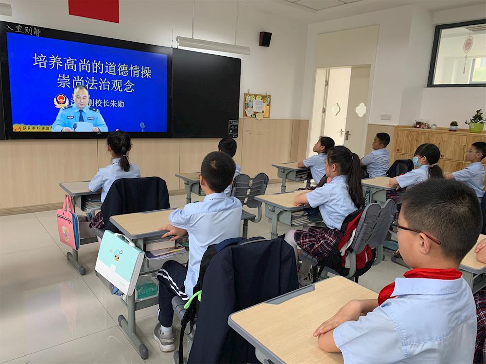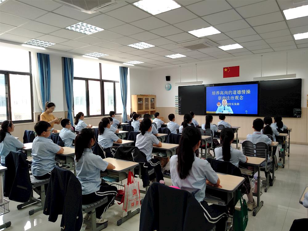 我是张家港市外国语学校北校区兼职法治副校长朱勋朱警官,受新冠肺炎疫情影响,根据防疫要求,今天升旗仪式,国旗下的讲话改为教室电视电话形式进行。我讲话的主题是《培养高尚的道德情操,崇尚法治观念》。