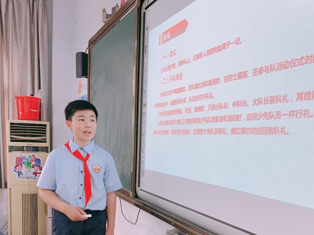 ▲北区小学部少先队大队长杜语晨宣读北区新队员名单