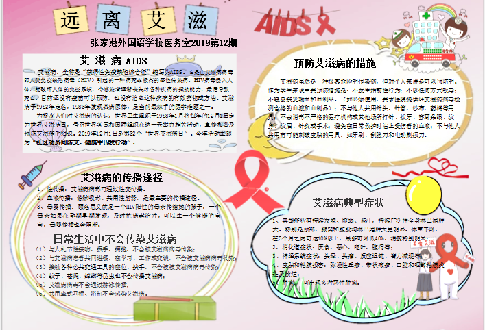 张家港外国语学校卫生小报第十二期——预防艾滋病专题