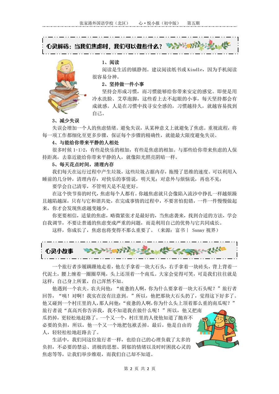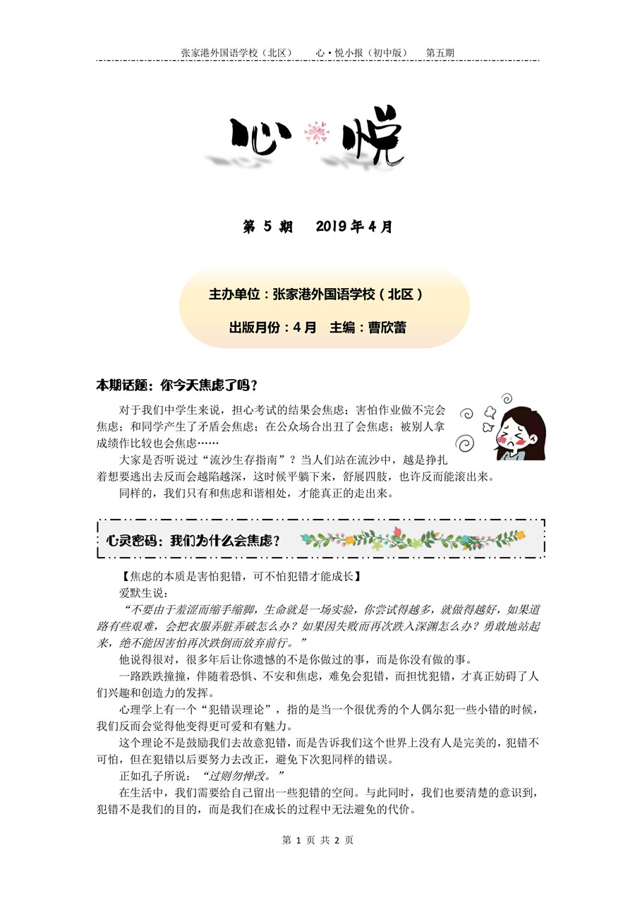 张家港外国语学校(北区)心·悦小报(初中版)第五期
