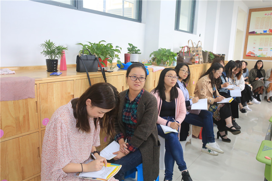 随后,李霞主管就上海之行,与大家分享了所听、所见、所思、所感与所悟。李霞主管结合课堂实例,向大家介绍了概括性情境、提示性情境和拓展性情境。李主管一再强调“要在语境中识字”,并提出了行之有效的识字方法:一要针对特点,各有侧重;二要识法多样,科学记忆;三要建立联系,加深记忆。