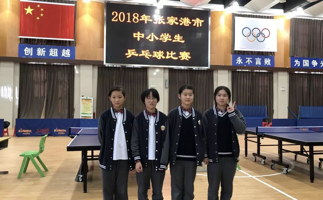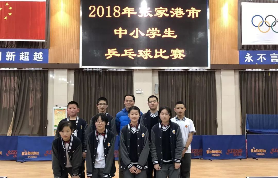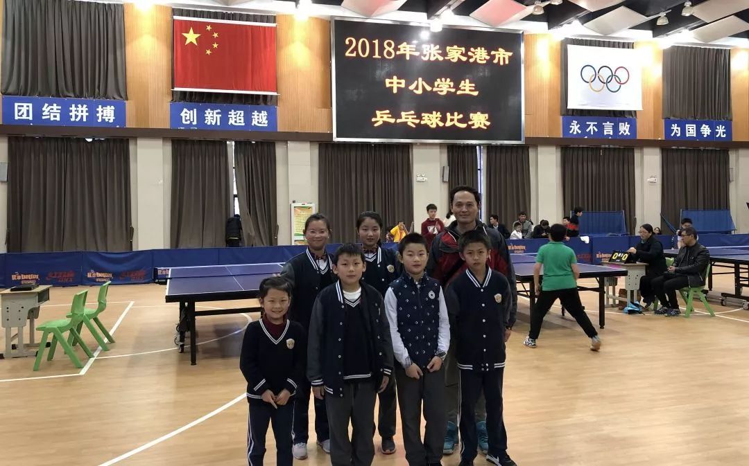 11月21日、22日,在张家港市教育局、体育局联合举办的2018年度张家港市中小学生乒乓球比赛中,来自张外本部和北区两个校区的14名小将代表学校出征,取得了小学男子第一名、小学女子第四名、初中男子第二名、初中女子第一名的好成绩。