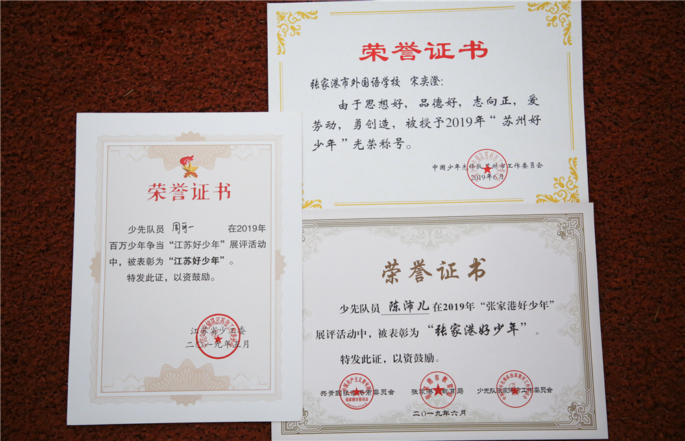 “江苏好少年”评比活动及初二基地社会实践获奖名单 来源: 发布时间:2019-11-25 09:23:29 浏览次数: 次 【字体:小 大】 颁奖一在2019年百万少年争当“江苏好少年”活动中,张家港外国语学校(北区)五2周可一获“江苏好少年”荣誉称号五2宋奕澄获“苏州好少年”荣誉称号四1班陈沛儿 获“张家港好少年”荣誉称号颁奖二社会实践基地优秀班集体奖初二1班,初二4班,初二5班 分享到: 【打印正文】
