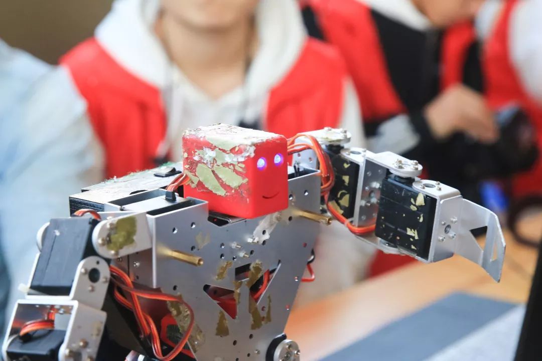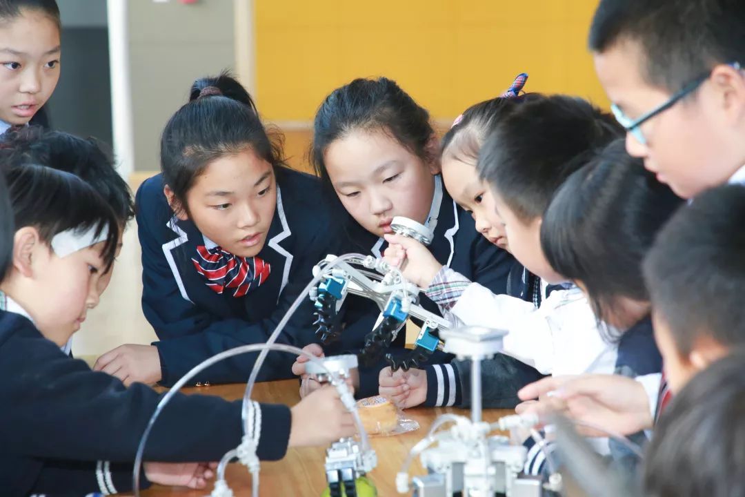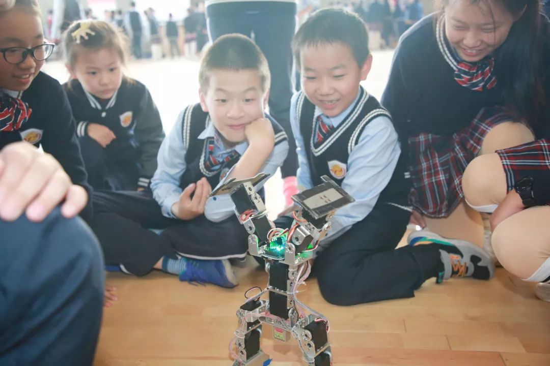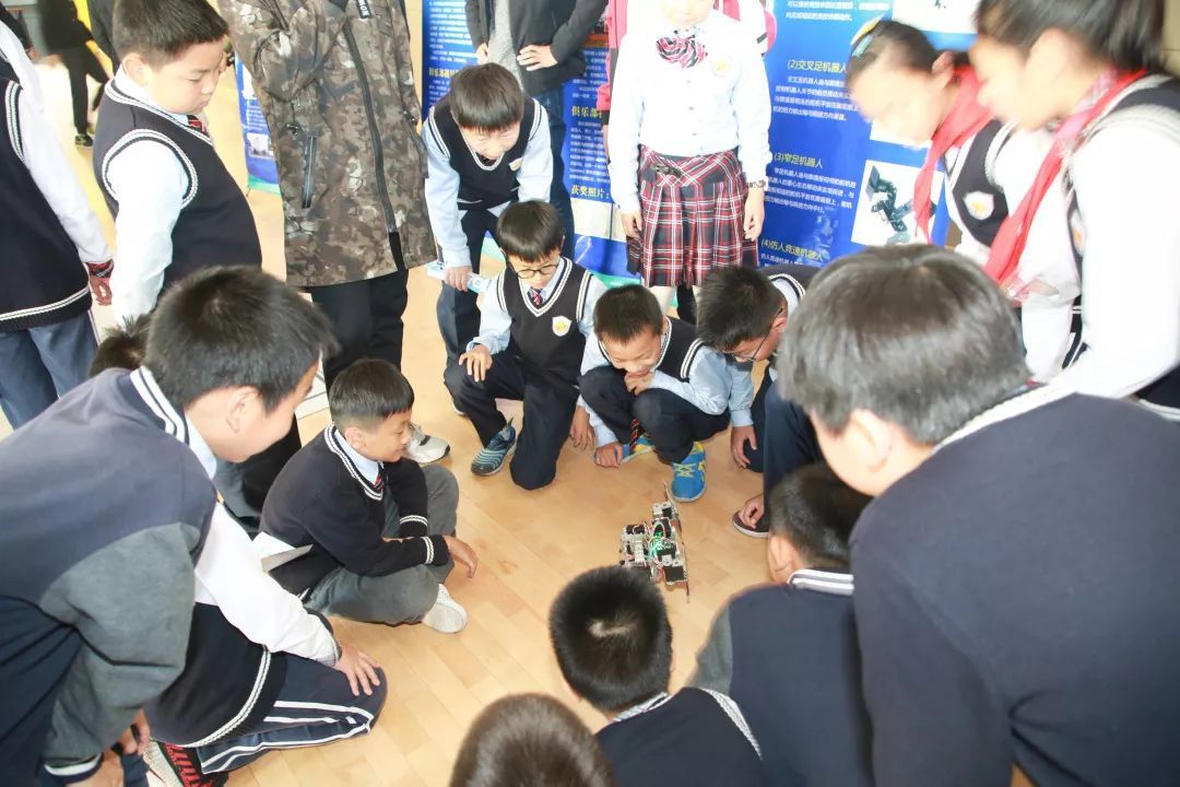 阵地攻防机器人、会跳舞的机器人、机械爪、3D打印机等作品全都揭开“神秘的面纱”,零距离与师生互动,供师生体验。高品质的展示一下子激起了大家浓厚的兴趣,同学们边体验边探究,时不时向现场专家询问其“奥秘”,现场好不热闹!