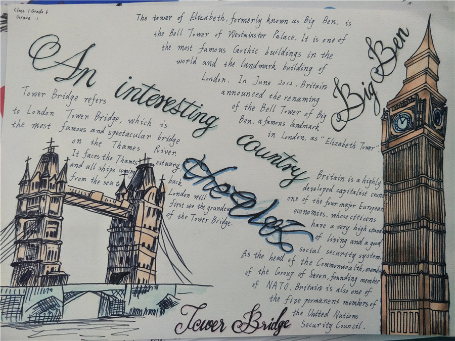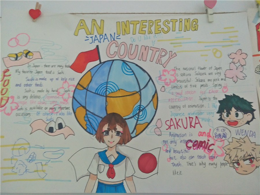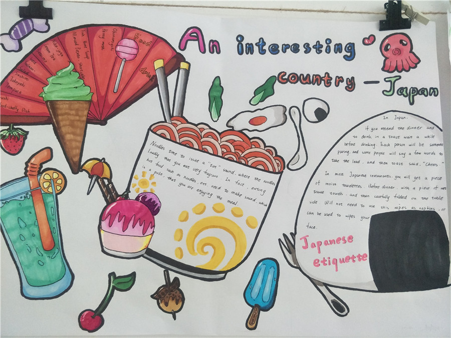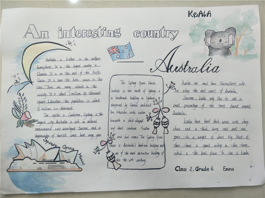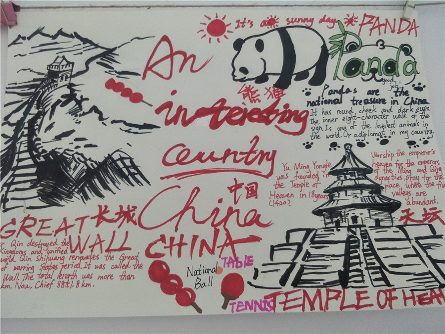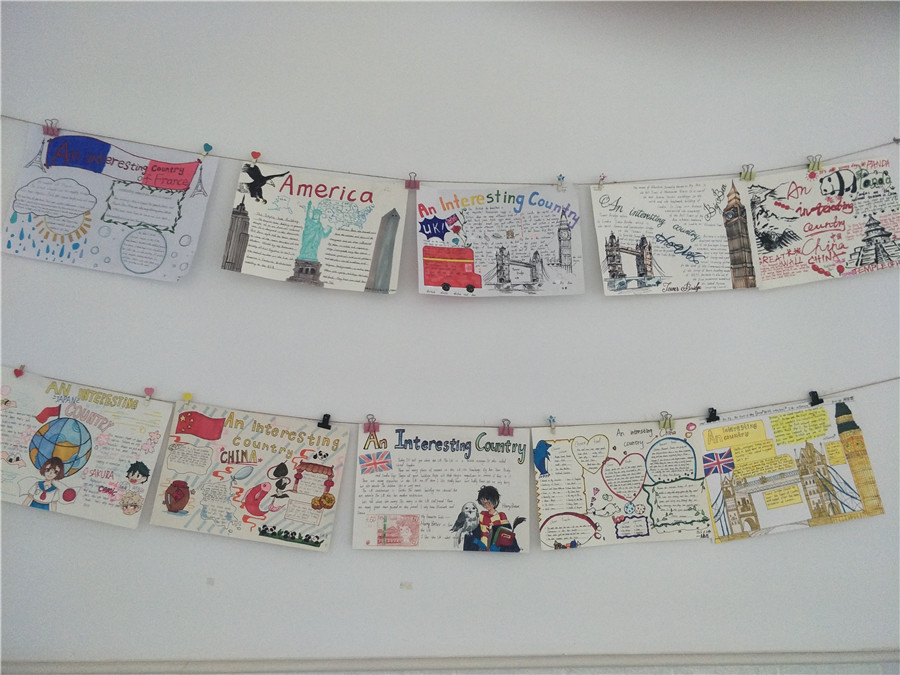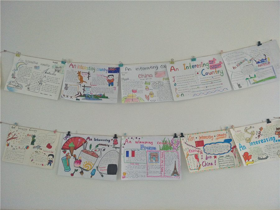 此次活动以两周为限,让学生在充足的时间内完成材料收集、准备和创作。活动以学生自我创作为主。同学们都兴趣高涨,踊跃参加,他们精心设计版面,用漂亮工整的英文单词,配以对应的插画,或彩铅,或蜡笔,或水彩笔,简单中透露着用心。一份份凝聚了同学们辛勤努力和智慧的手抄报在同学们的笔下诞生。