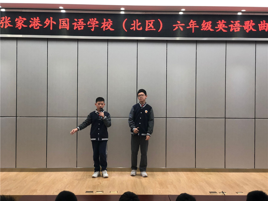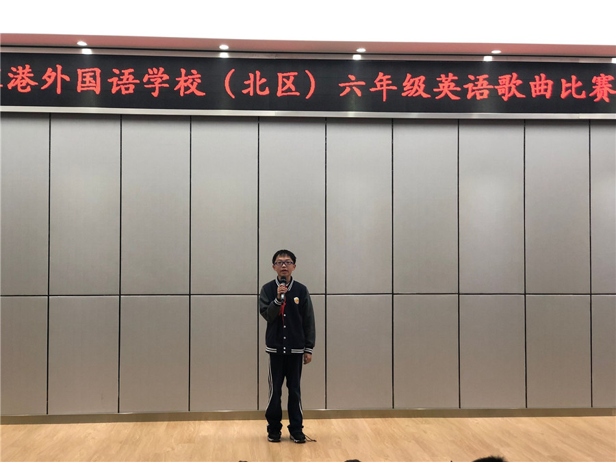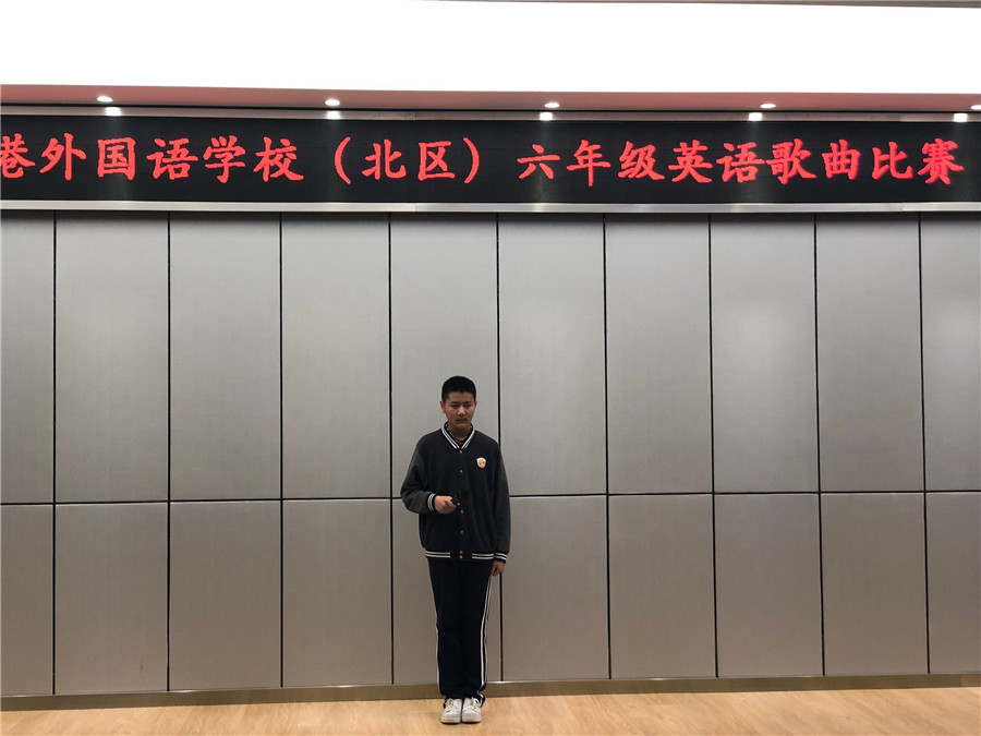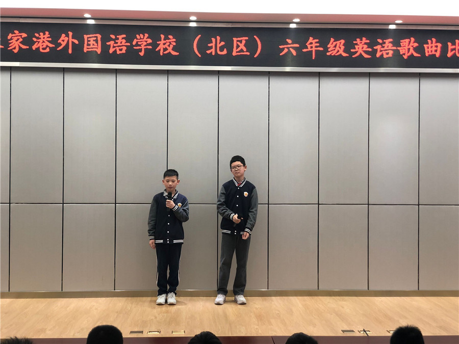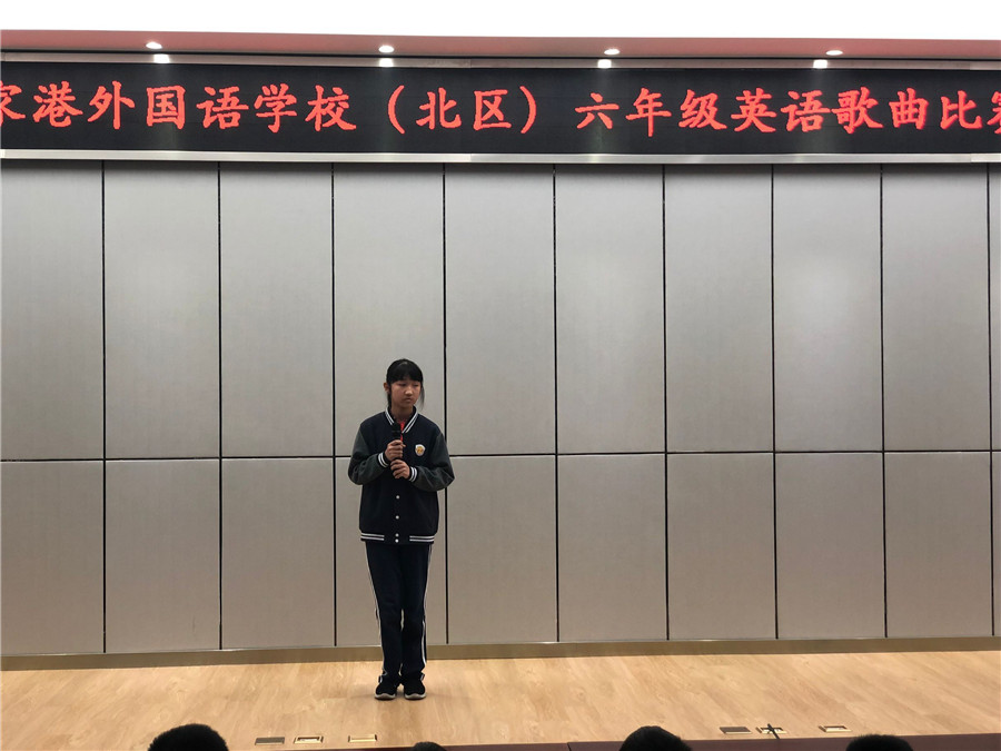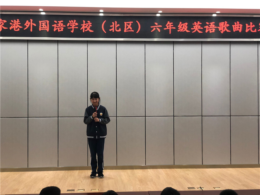 本次的8组参赛选手精心地选择了他们喜爱的英语歌曲,以饱满的热情和昂扬的精神面貌,在一展歌喉表演音乐才能的同时,展示了他们对英语学习的浓厚兴趣,给师生们带来了一场美妙的音乐盛典。在舞台上,每一位优秀的的参赛选手展开了精彩的角逐。一首首动听的歌曲回荡在剧场里,场下观众的加油喝彩声此起彼伏,大赛高潮迭起。六(2)班的徐珂和杜好同学演唱的《baby》,歌曲节奏轻快,委婉动听,表达了对英语歌曲的喜爱。六(4)班的杨徐清书同学演唱的 《Trouble is a friend》感情真挚,完美得展现出自己的独特风格,一次次将现场气氛推向高潮