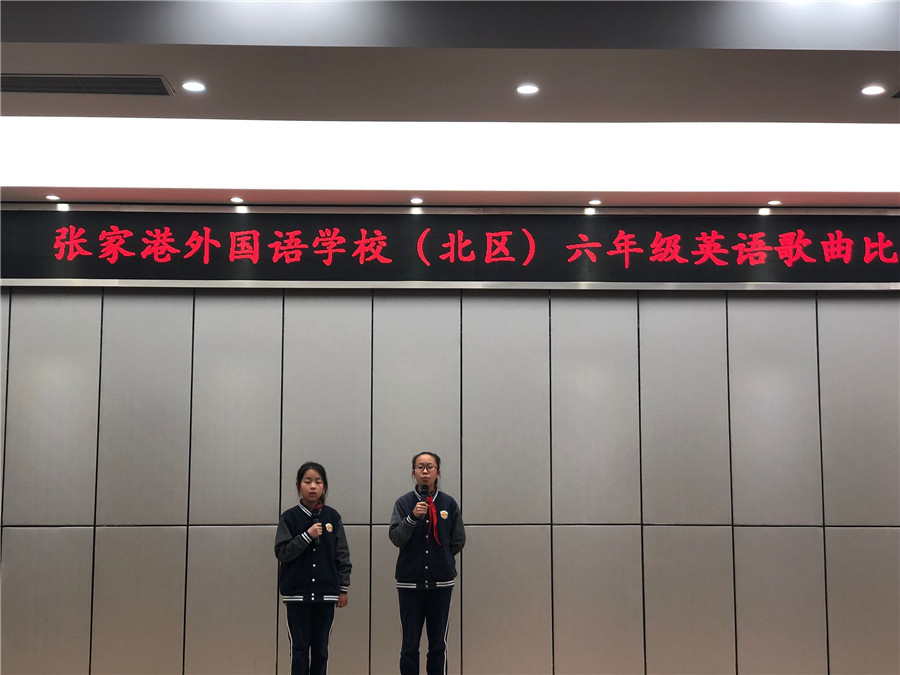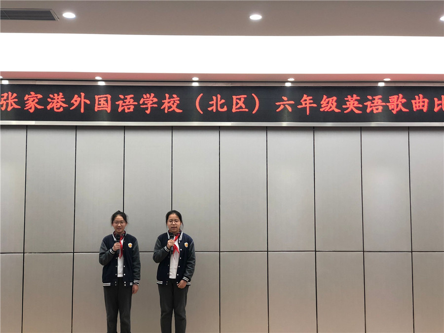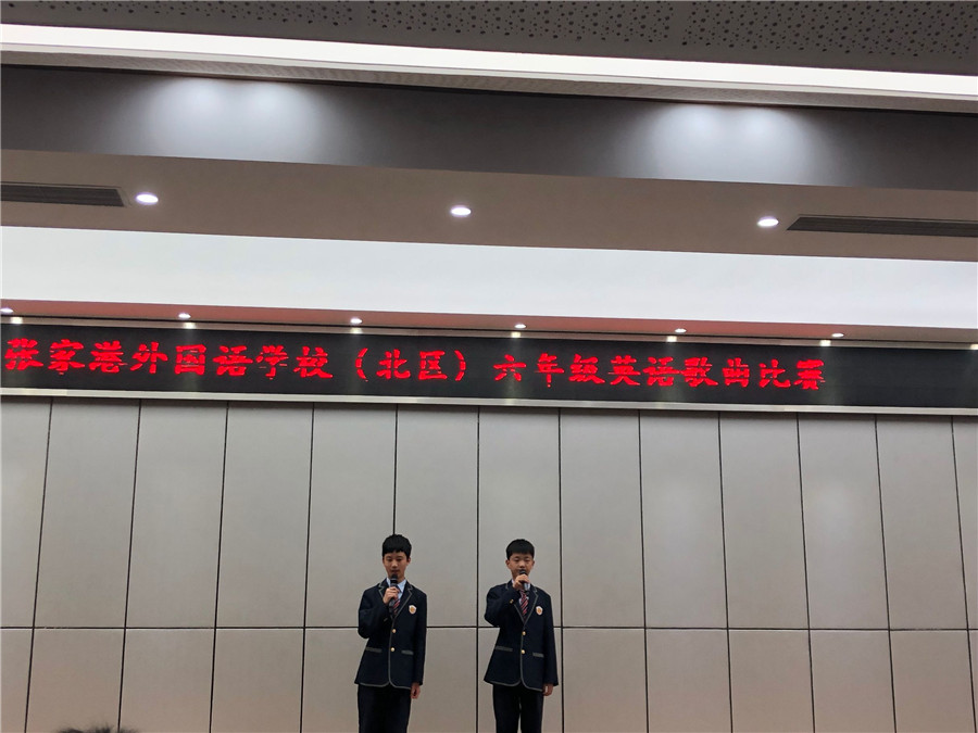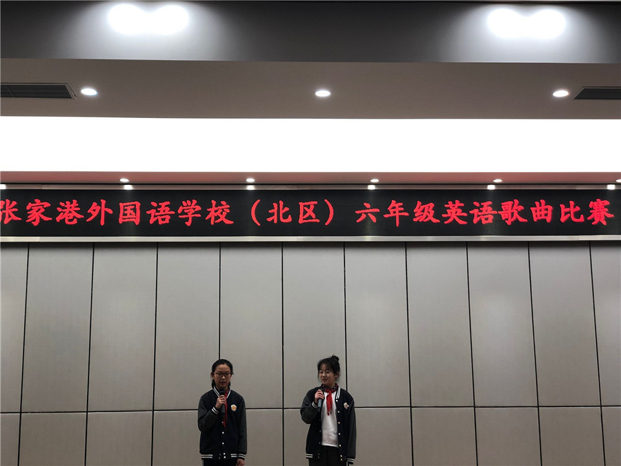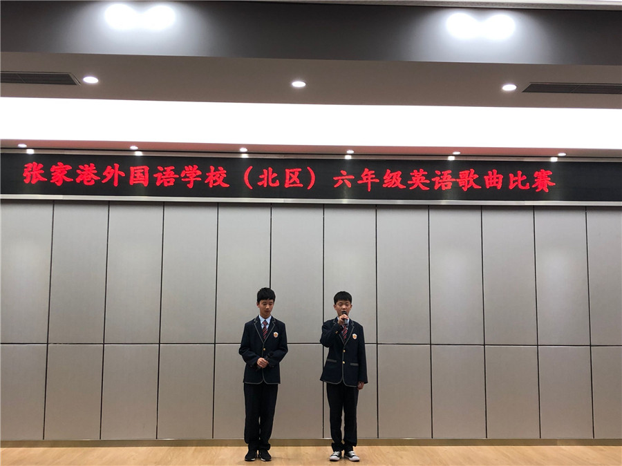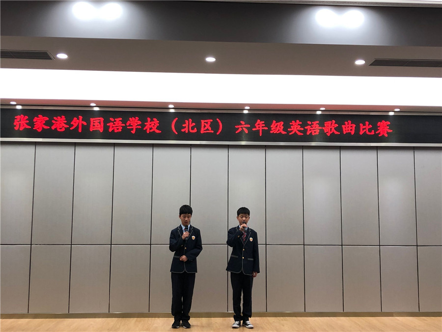 本次的8组参赛选手精心地选择了他们喜爱的英语歌曲,以饱满的热情和昂扬的精神面貌,在一展歌喉表演音乐才能的同时,展示了他们对英语学习的浓厚兴趣,给师生们带来了一场美妙的音乐盛典。在舞台上,每一位优秀的的参赛选手展开了精彩的角逐。一首首动听的歌曲回荡在剧场里,场下观众的加油喝彩声此起彼伏,大赛高潮迭起。六(2)班的徐珂和杜好同学演唱的《baby》,歌曲节奏轻快,委婉动听,表达了对英语歌曲的喜爱。六(4)班的杨徐清书同学演唱的 《Trouble is a friend》感情真挚,完美得展现出自己的独特风格,一次次将现场气氛推向高潮