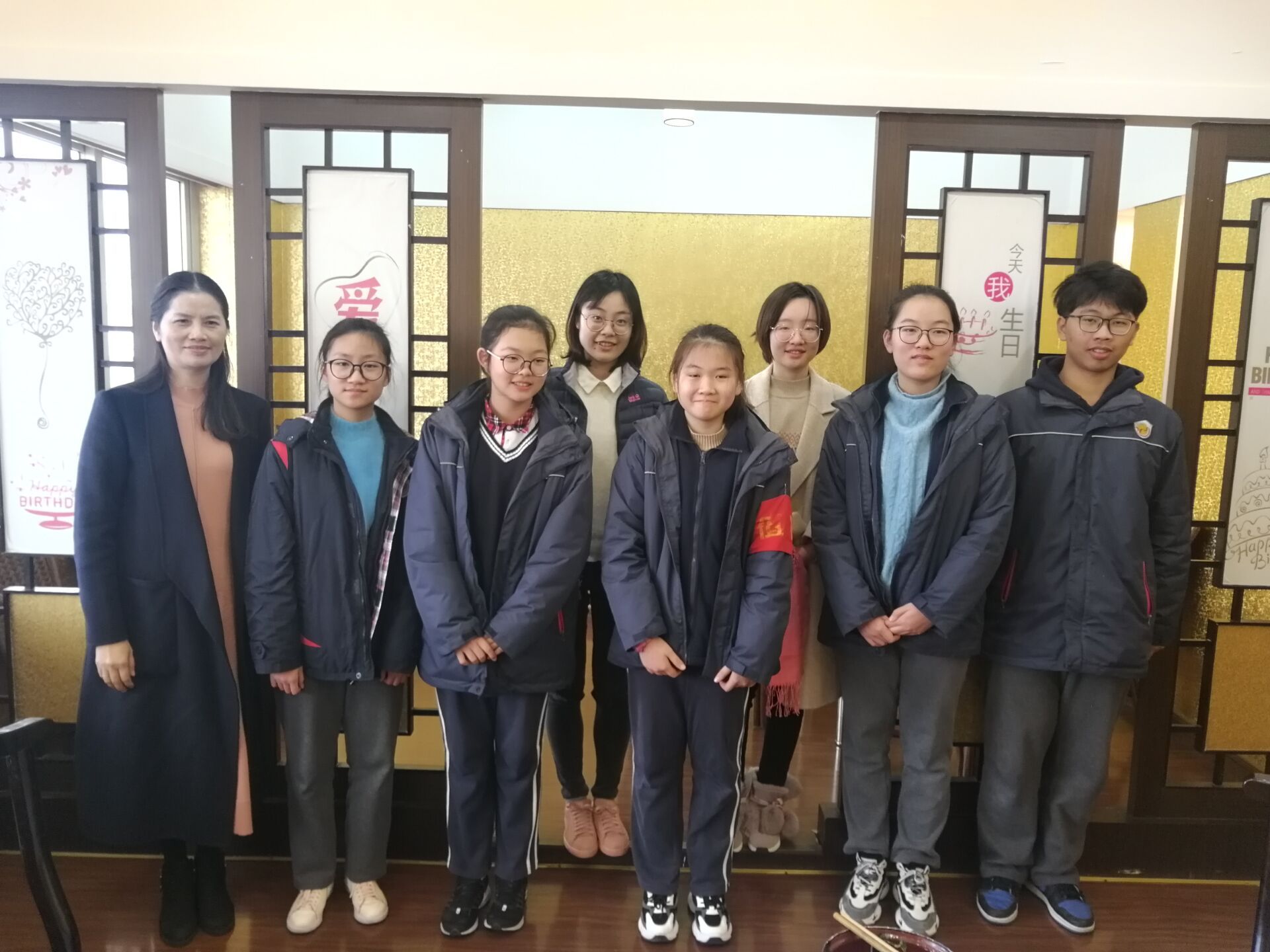 与当天过生日的同学们共进午餐,
