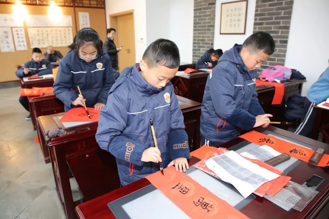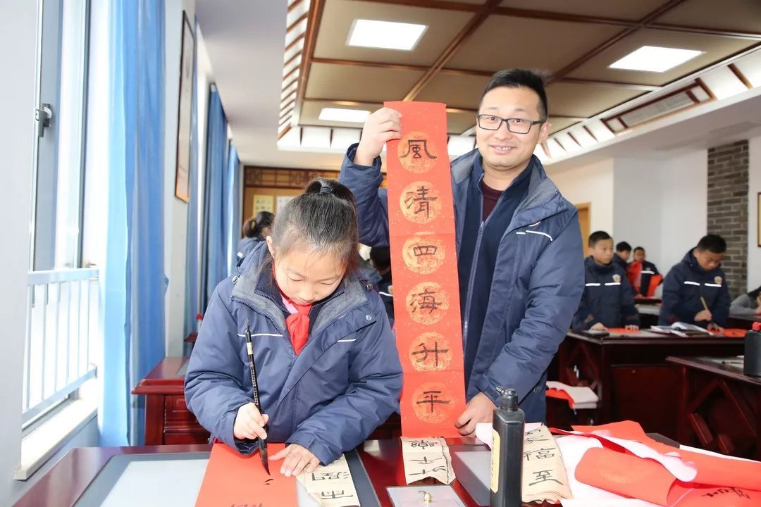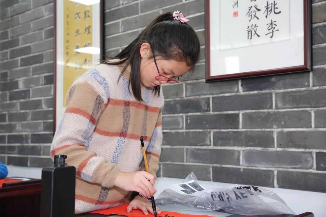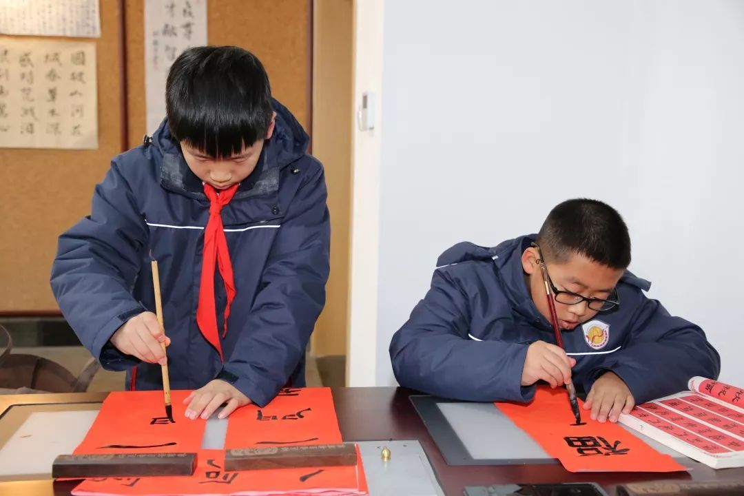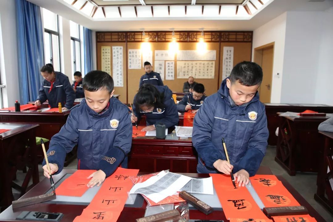 新春佳节临近,张外的“小小书法家”们趁着返校日齐聚一堂,在老师的带领下泼墨挥毫,写下祝福的春联、送福的斗方,浓郁了新春的喜庆氛围。