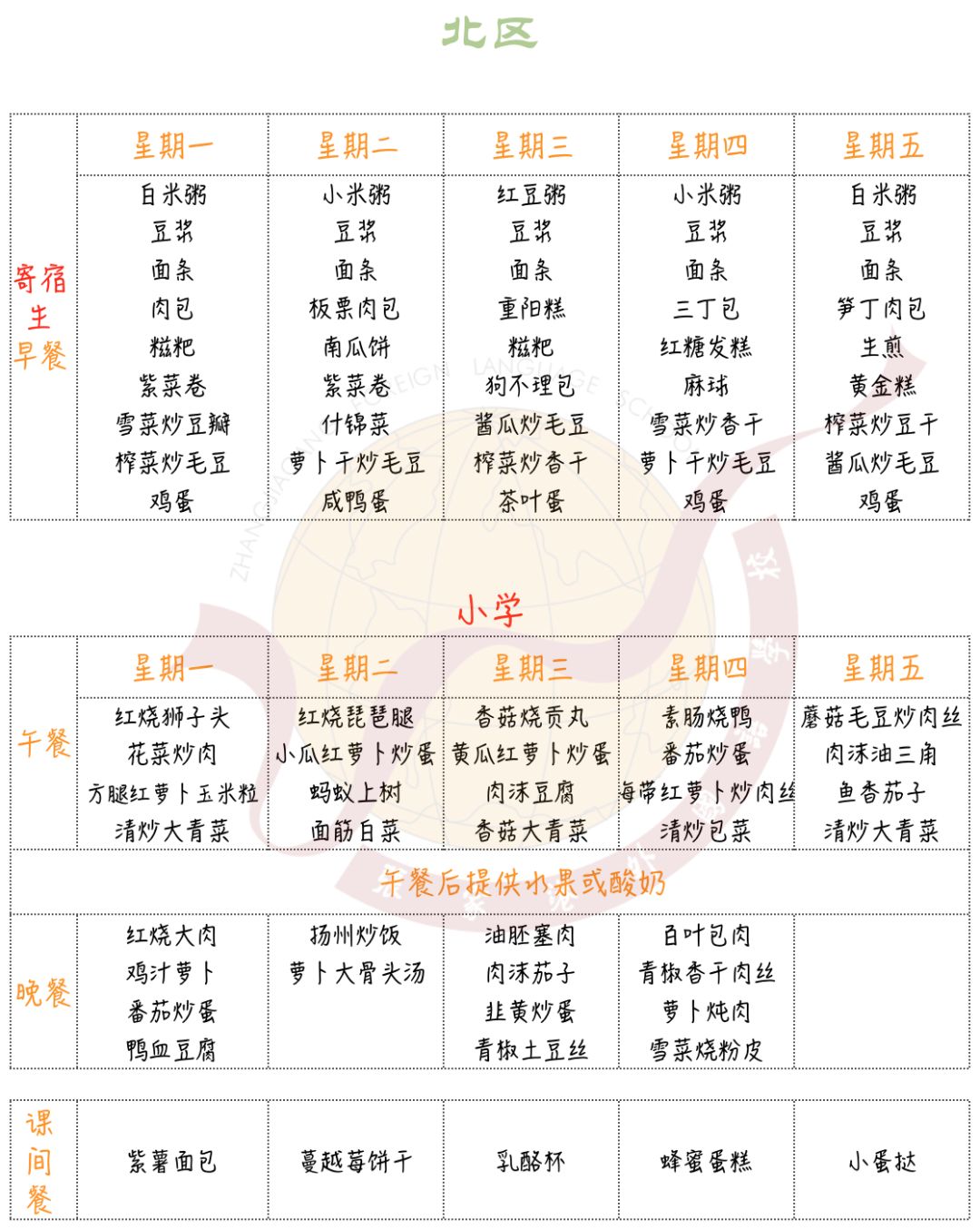 张家港外国语学校(北区)19-20学年第一学期第14周(12.2-12.6)学生菜单公示 来源: 发布时间:2019-12-01 09:17:34 浏览次数: 次 【字体:小 大】 分享到: 【打印正文】