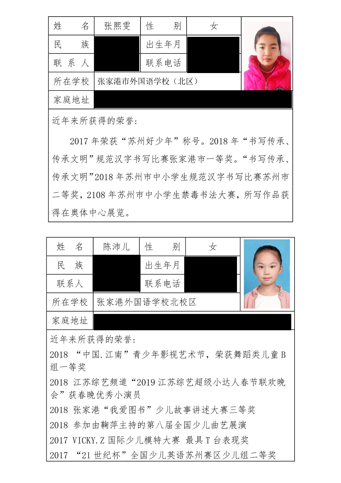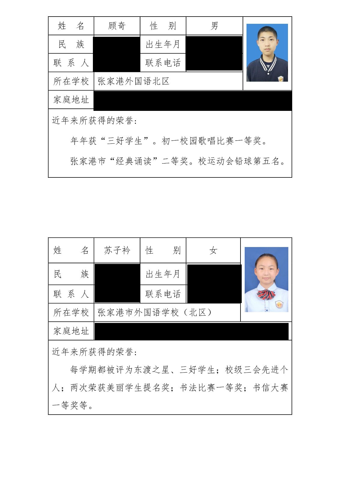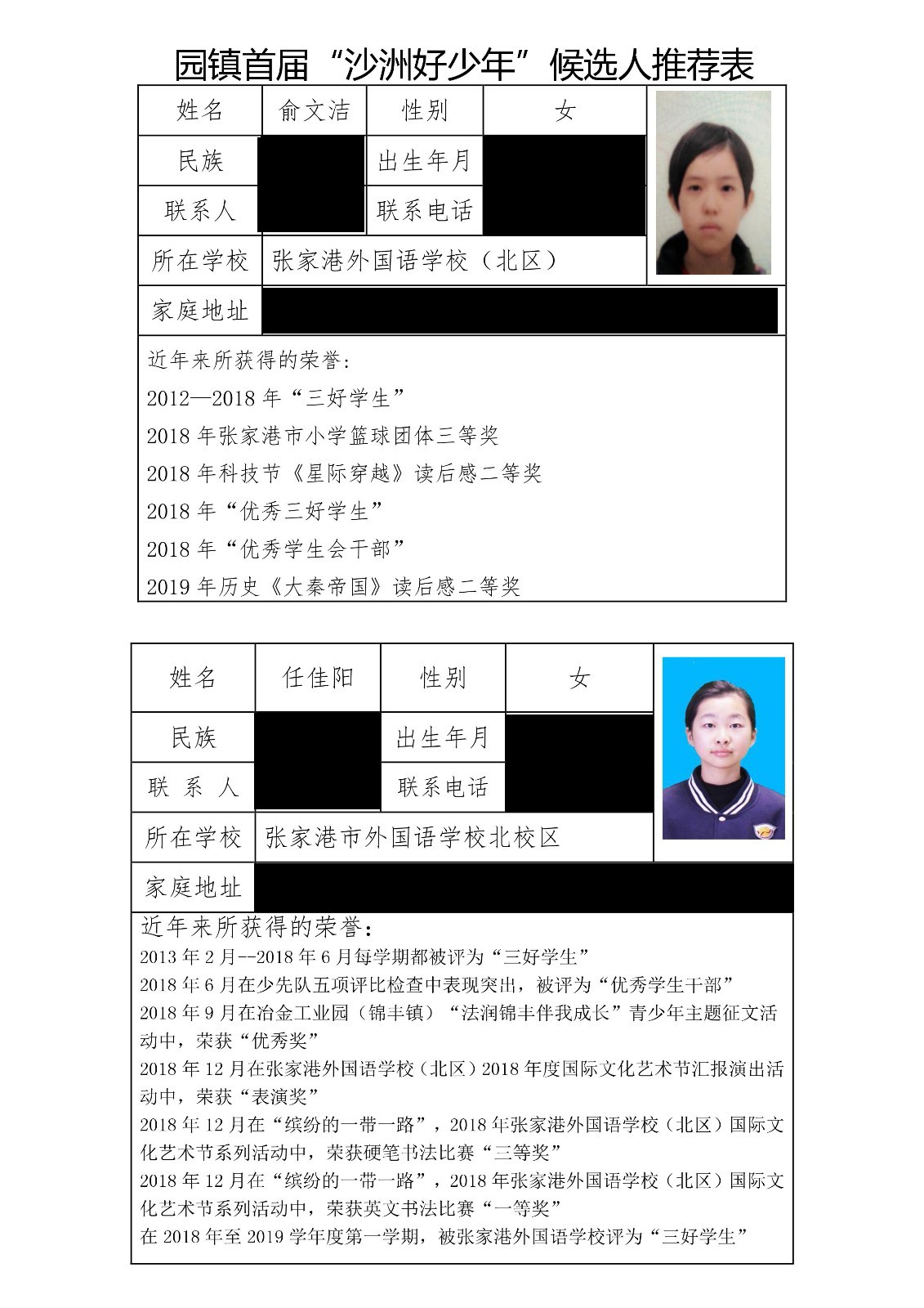 根据活动组织方的安排,张家港外国语学校(北区)拟推荐俞文洁等8名品学兼优的同学参与评选,现将被推荐人向社会大众公示: